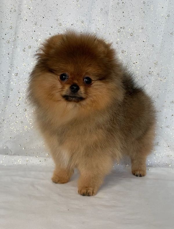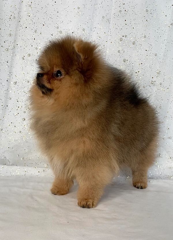 Faith is our tiny champion pistol and a true standout here at GemPoms. An incredibly intelligent and involved girl, she earned her championship title very quickly, backed by a long pedigree of outstanding dogs. With her stunning bright orange, almost red-sable coat, Faith possesses a lively presence and a level of confidence that naturally demands attention wherever she goes.