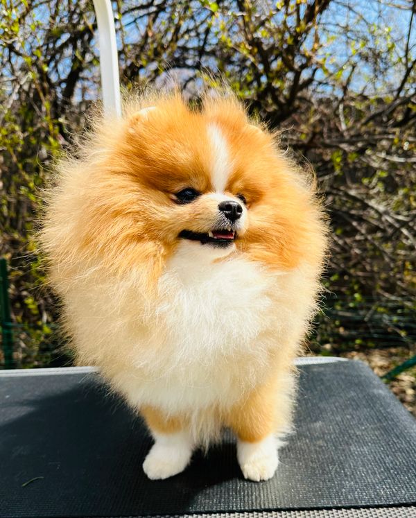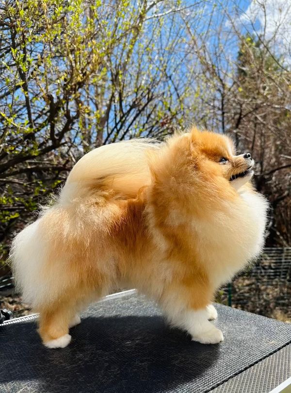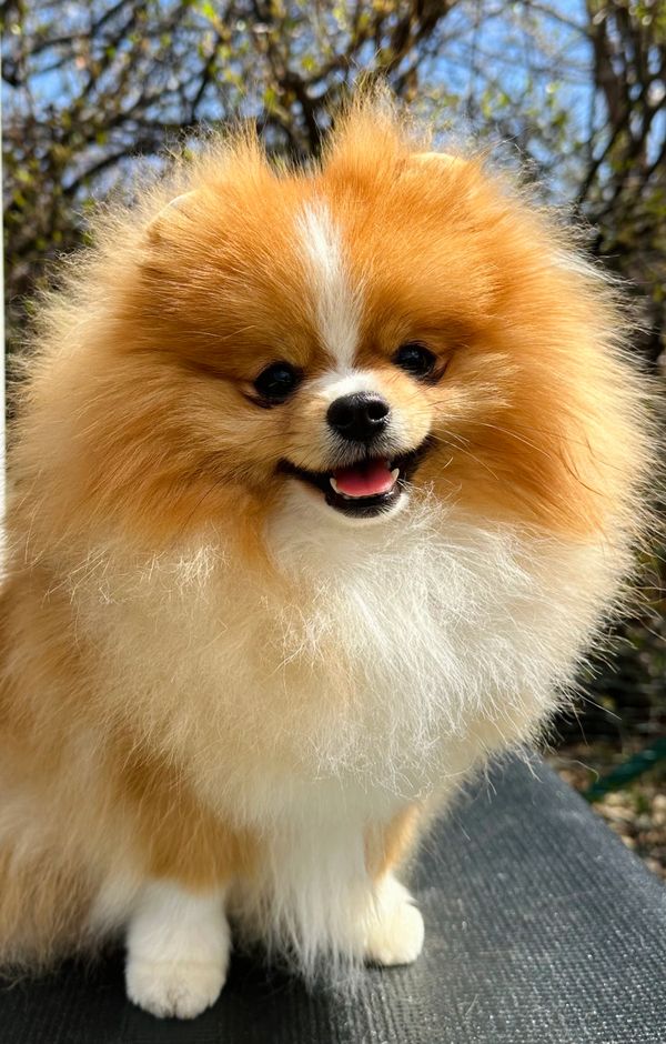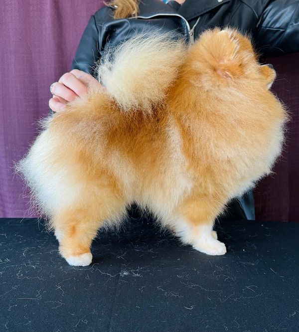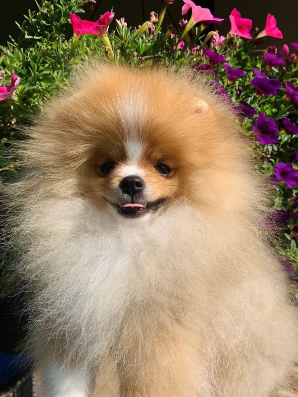 While his pedigree is impressive, it’s Nova’s personality that truly shines. Nova is a stunning 6.5 lbs example of the Pomeranian breed and a coat that flows to the ground. He brings a touch of boundless joy to every room he enters. He is a perpetually happy boy who seems to have been born with a smile on his face.